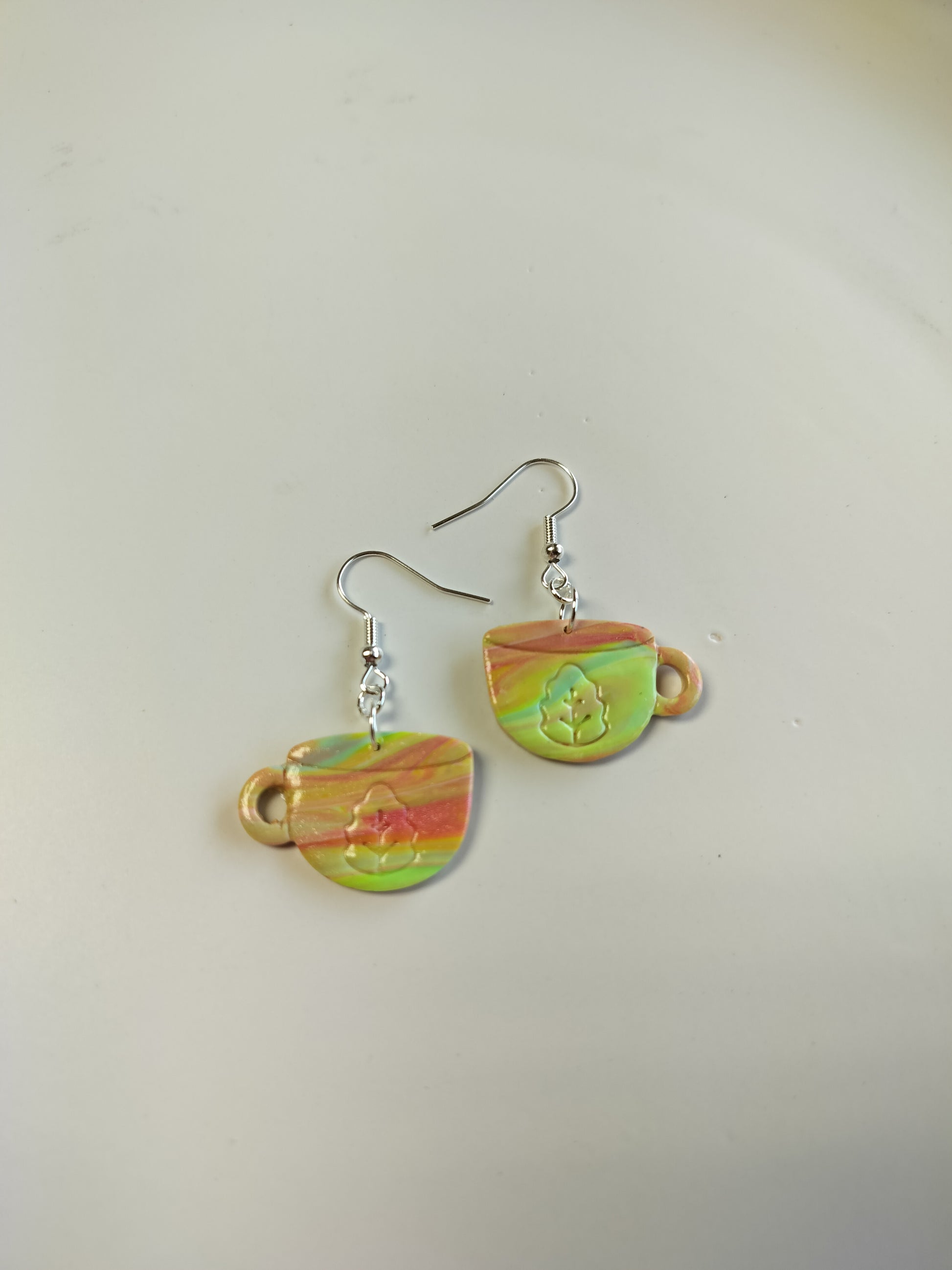 Coffee Mugs with a mix of Fall colors and stamped with a leaf.